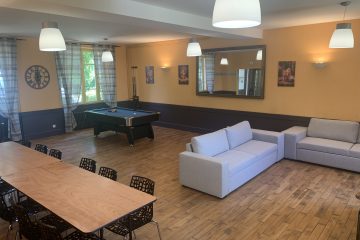 – einen 60 m² großen Gemeinschaftsraum (mit Großbildschirm und Billardtisch),
